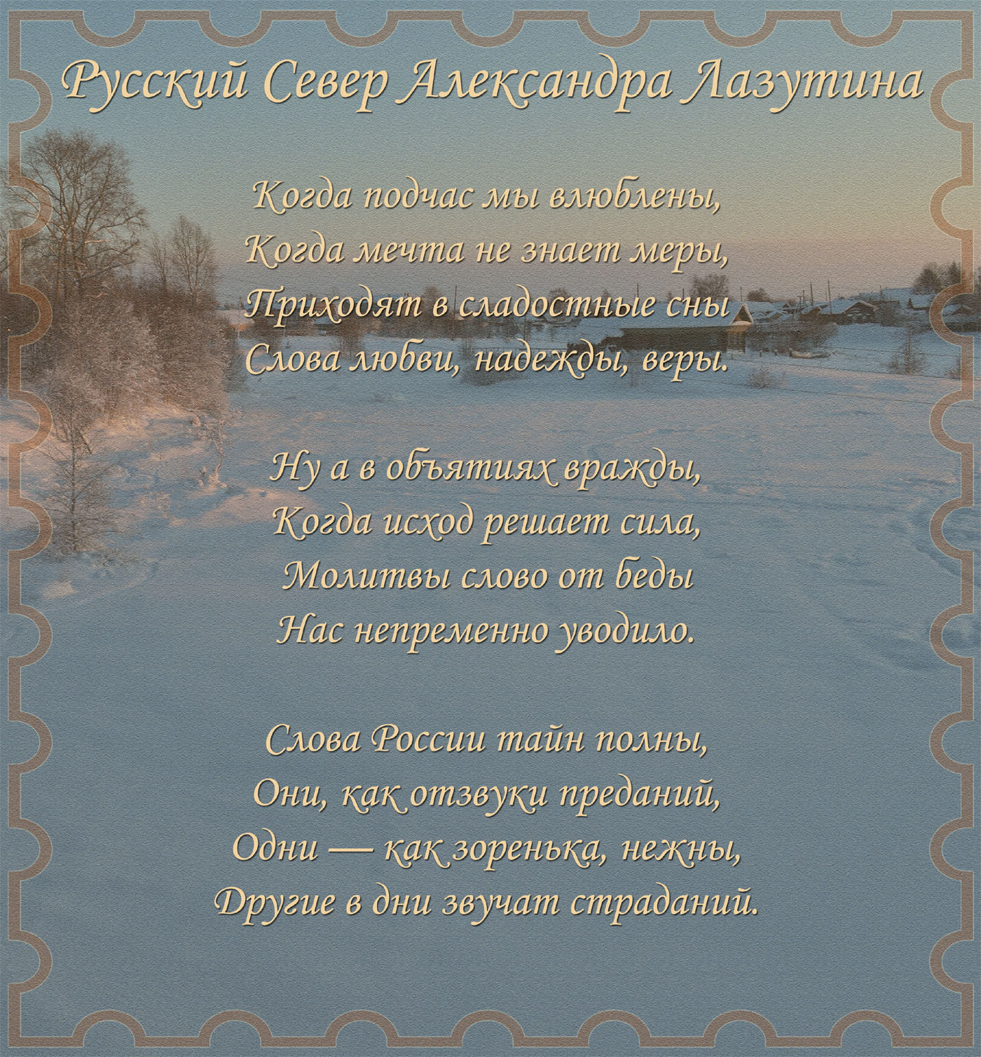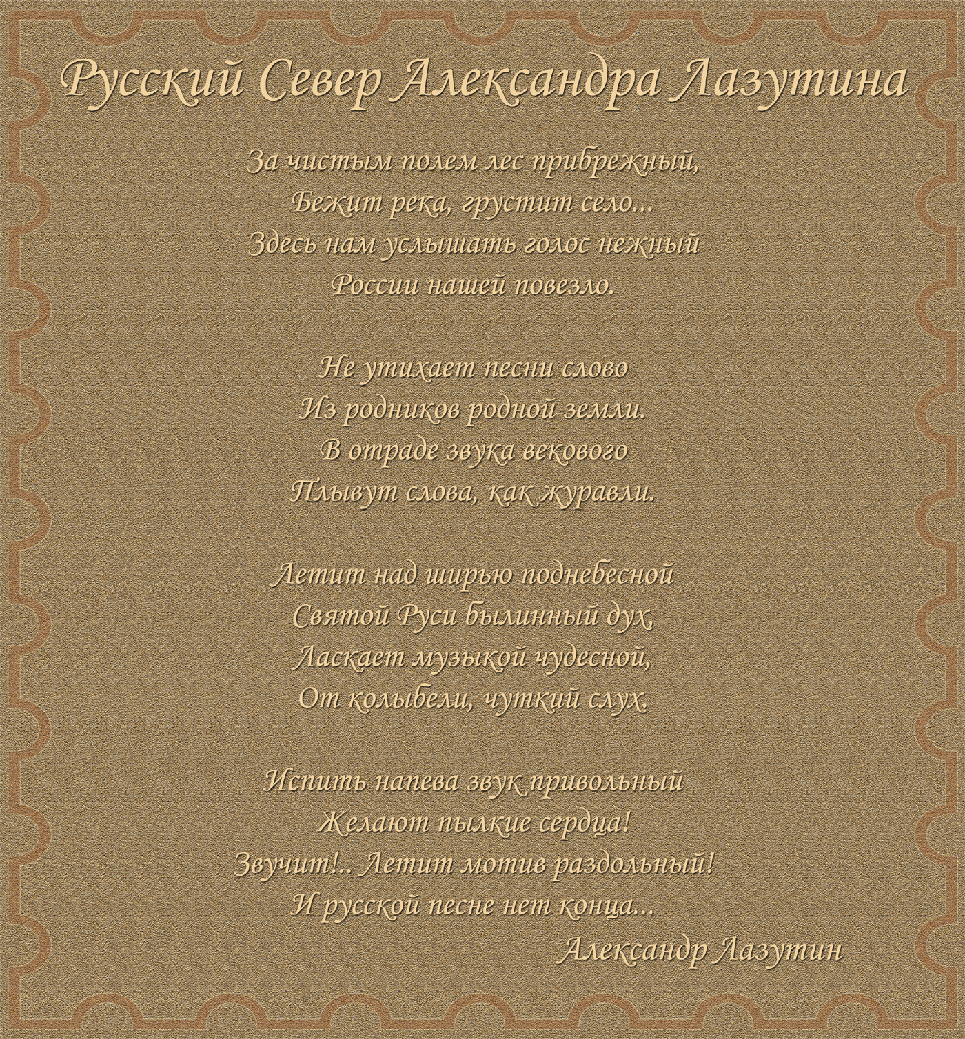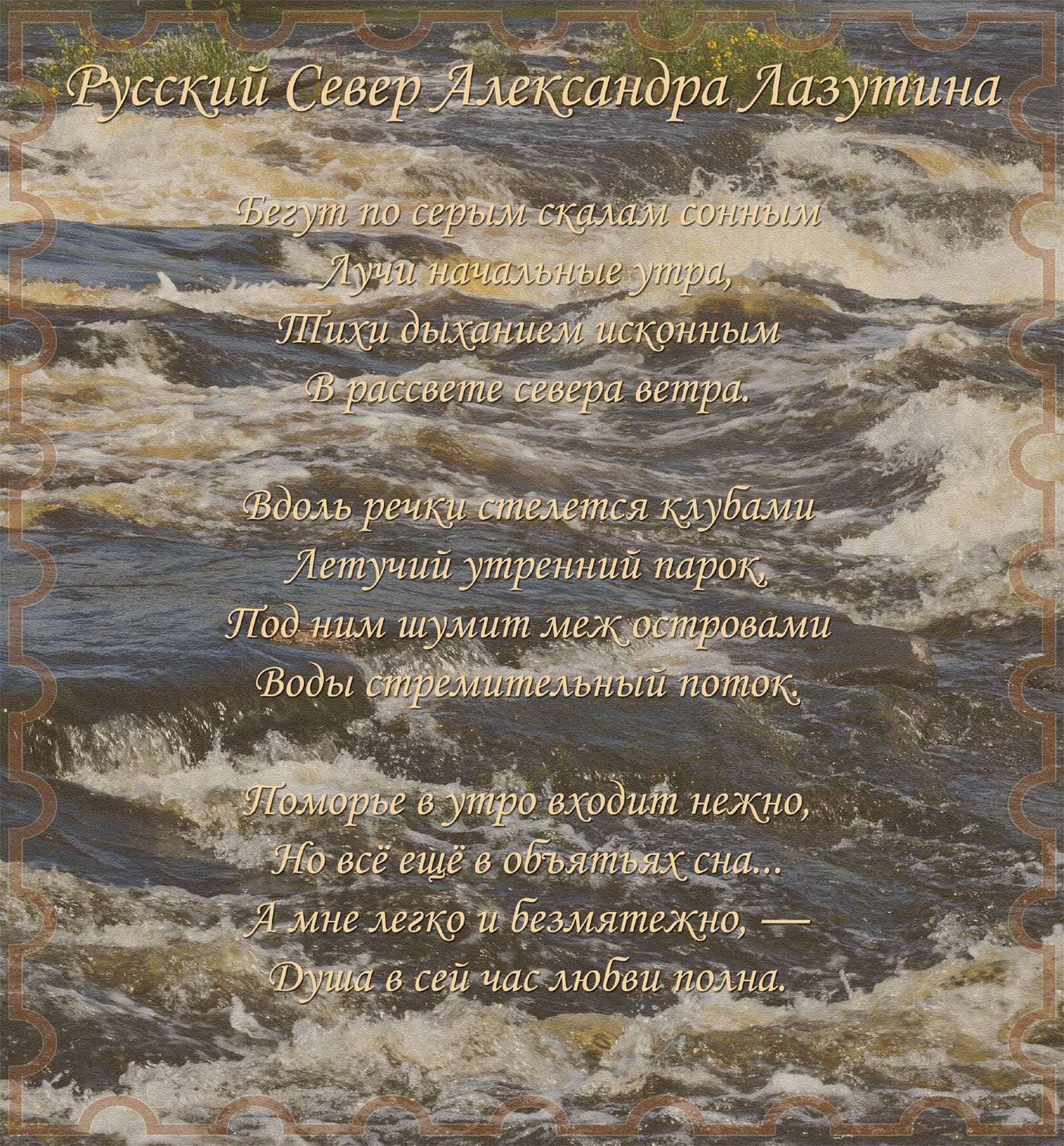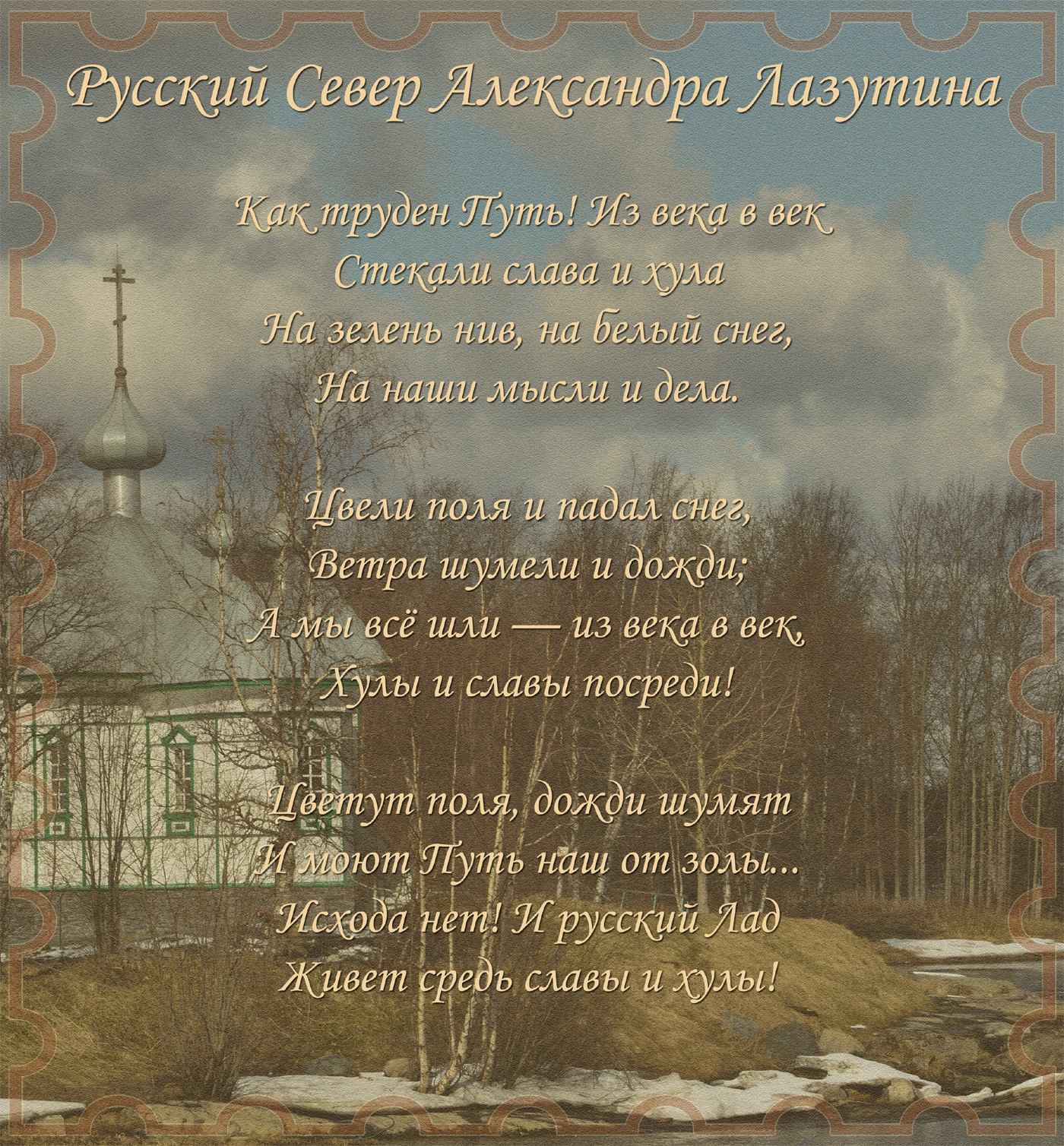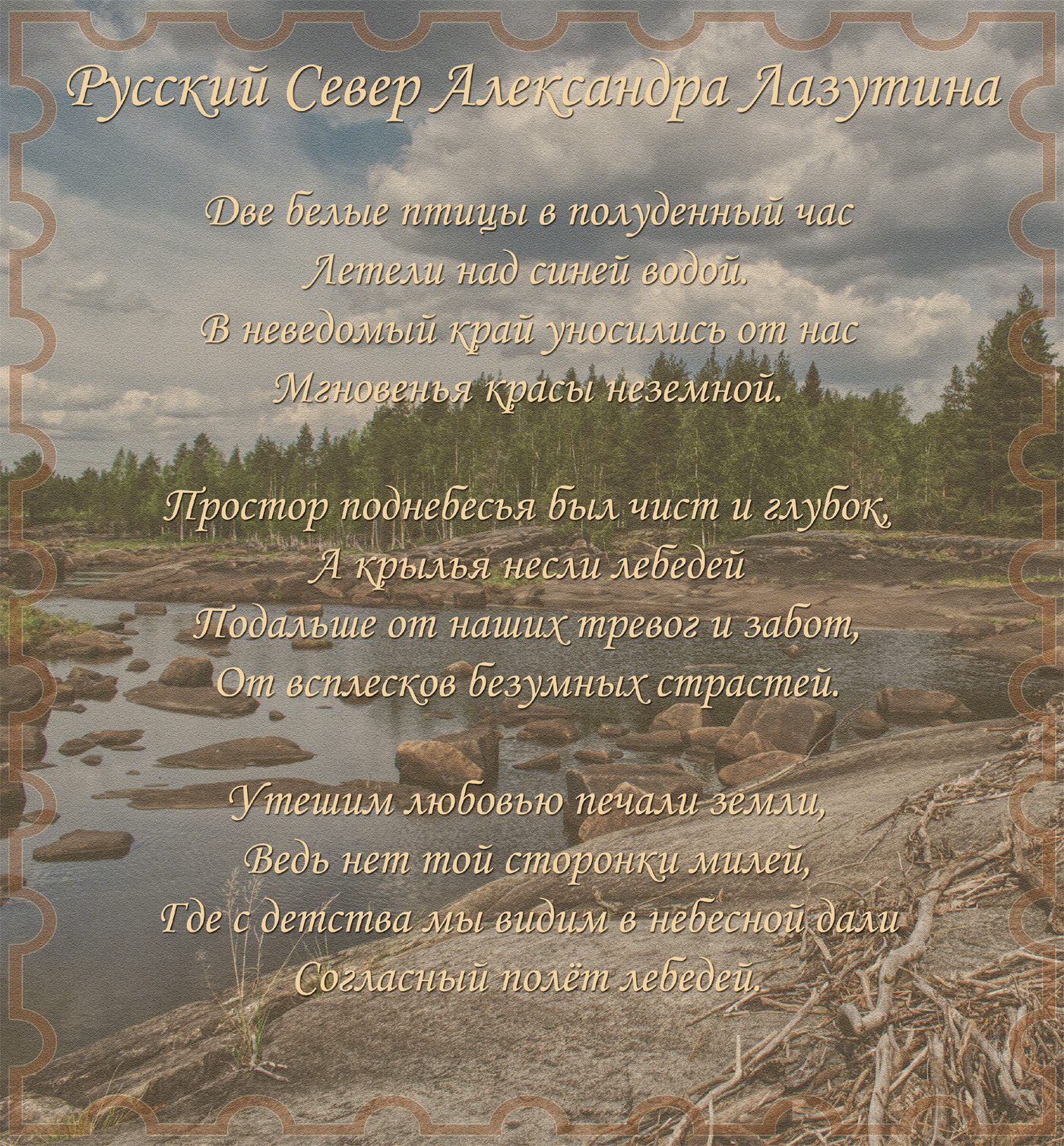 Альбом-Календарь Александра Лазутина, поэта живущего «у самого Белого моря», дополнен теперь еще и стихами. Он расскажет вам дальше о Карелии и Беломорье, об удивительной красоте и любви нашей Северной Фиваиды. Афоне русского Севера.