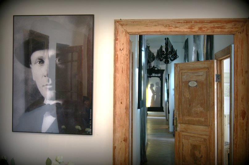 Полупустые комнаты, намеки экспозиции, зеркала, огромные дышащие окна, таблички на дверях коммуналки, и простор, простор, простор… Войдя в «белый зал», на окне я увидела лист с надписью «Если вы хотите получать репертуар театра «КомедиантЪ», напишите свой эл. адрес». Недолго думая, я вписала туда свой e-mail, и пошла дальше по квартире в поисках заветной Булгаковской комнаты.