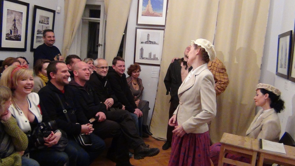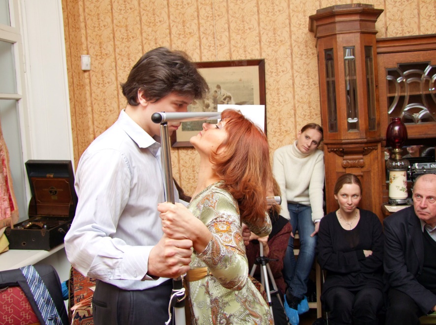 Особенность постановки и в том, что актеры и зрители не отделены друг от друга – все происходит здесь и сейчас, среди нас, в маленькой комнате. Хотя я не знаток тонкостей театрального искусства, но мне кажется, что такая форма весьма непроста для актеров, которые не вознесены на пьедестал сцены, не отделены от зрителей оркестровой ямой, рампой, будкой суфлера.