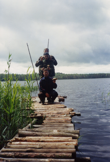 Оказывается заснули мы после этих наших бултыханий, как Илья прямо на сырой земле. Часа три не меньше прохрапели, уже за обед давно. И вышла пасти своих коз местная бабка, а они, увидя нас на своем ежедневном пастбище – весьма удивились. Подошла. Поздоровались. Там все здороваются. Идут по лесу и здороваются со всяким встречным-поперечным. «Бескультурье» страшное! Искренне так рады тебя видеть. Ну, если ты конечно на человека похож, не совсем бармалей. Впрочем, и с бармалеем все равно поздороваются. А знаете, что трактор «Беларусь» с толкача завести все-таки можно? Только вчетвером, конечно, и под горку слегка, а так будет натужно все-таки. А потом грех не поесть соленых рыжиков с сырыми яйцами – прямо из курятни. Сидишь за большим столом. Печь русская стоит, громадная такая, целый дом. Половицы не 120-180 мм. – а в полметра в чистую шириной и от стены до стены горницы! Не крашеные. Метеные-драеные можжевельником – светлые, хоть им 50 лет уже. А вот от гуся, когда вам предложат его с собой, живого гуся прямо из сарая, - тут обязательно нужно отказаться! Не все, что вам предлагается нужно брать! Голова на то есть и совесть. Должны быть там в обязательном случае. Ну а когда вам посватают дочек, тут тоже нужно сразу отказаться, иначе огребешь потом, как следует, что и полезно, если воспримешь это совсем как «шутку». К просватанью же невест будет в дополнение предложено подвезти творога-молока и т.д., несколько вопросов о том, как там «вообще» Москва? И когда «наши» придут? Ну и, конечно, крепкое рукопожатие на прощание.