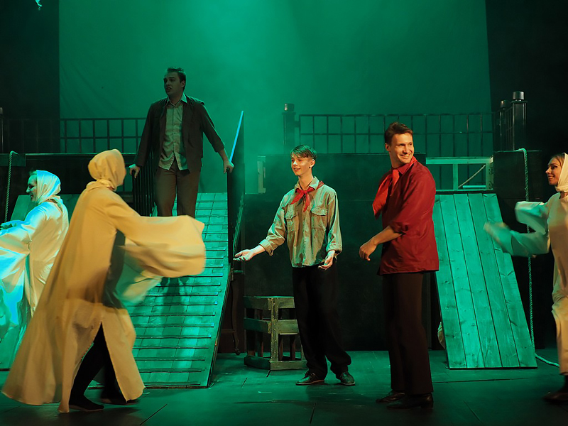 Вольск – родина 106 (!) Героев Советского Союза. А пьеса и спектакль рассказывают о подвиге ростовских подростков, героически погибших в первую, 8-ми дневную оккупацию Ростова гитлеровцами. Эта тема особенно близка сердцу участников спектакля, потому что среди вольчан – Героев СССР двое школьников-подростков. А главреж театра Алексей Козлов – из Ростова-на-Дону. И давно хотел сделать спектакль о ростовских мальчишках-героях: Вите Черевичкине и его друзьях. О них и рассказывают пьеса и сложный по форме спектакль. Поэтизм условного действа соединен здесь с принципами психологического театра. Драматические сцены чередуются с пластикой, танцем, пением. Реальные персонажи – с персонажами условно-мистическими. В спектакле много песен – фольклорных, казачьих, военных, довоенных. Звучат и песни в современных ритмах.
