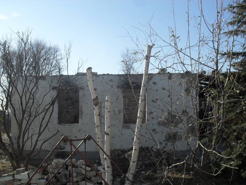 Разрушения во дворе Свято-Покровской церкви, фото автора, ноябрь 2014 года.