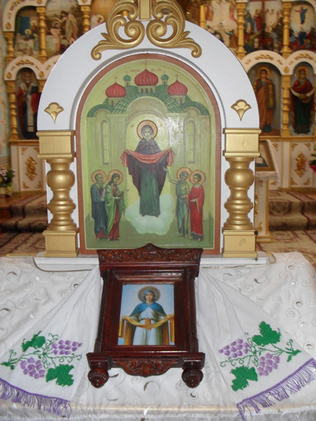 Икона Свято-Покровского храма, которой молились в 2014-м году жители пос. Новосветловка.Фото автора, ноябрь 2014 года.