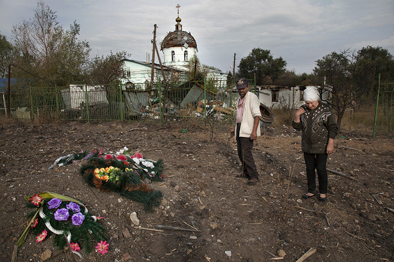 – И всё. Там многих тогда поубивало… Я услышала взрывы, сразу подумала, что муж мог пострадать. Прибежала – он ещё живой был… До больницы мы его на машине ополченцев довезли… а спасти… не смогли. Кровью истёк. Позвоночник перебит был и печень… В общем, раны, не совместимые с жизнью…